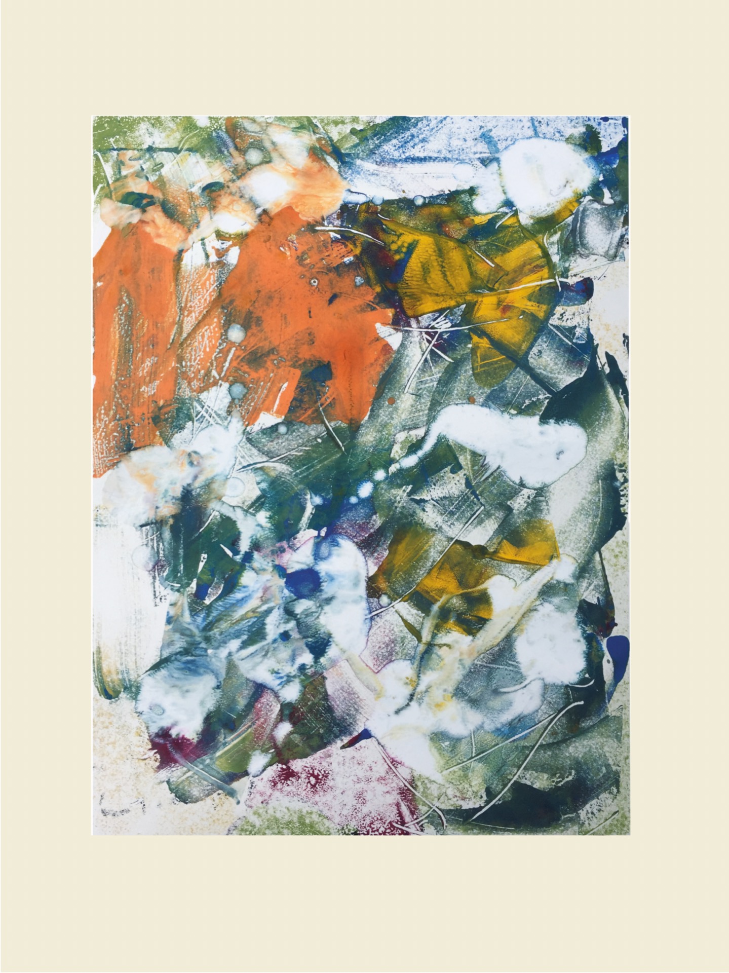 Diese experimentelle Monotypie entstand in der Corona-Krise, als viel Zeit zum experimentieren zur Verfügung stand.
